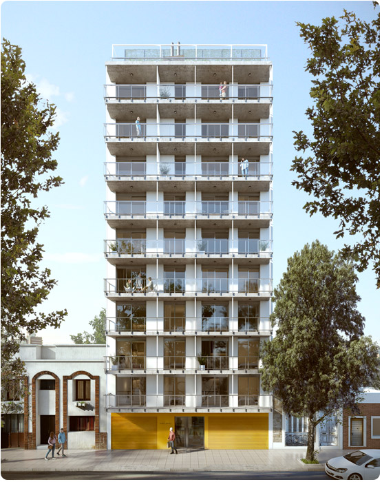 El edificio Miraf Haedo se conforma de 36 unidades de vivienda de 1 y 2 dormitorios en el céntrico barrio Cordón a pasos del Shopping y Terminal Tres Cruces. Cuenta con orientación Norte-Sur garantizando iluminación natural y máximo asoleamiento. Construcción tradicional en hormigón y mampostería en todos sus muros, con acabados de alta calidad, materiales depurados prevaleciendo el hormigón visto, el aluminio y cristal, con el uso de vinílicos y porcelanatos de alto transito en pavimentos y cerámicas de alta calidad en revestimientos de baños y cocinas.